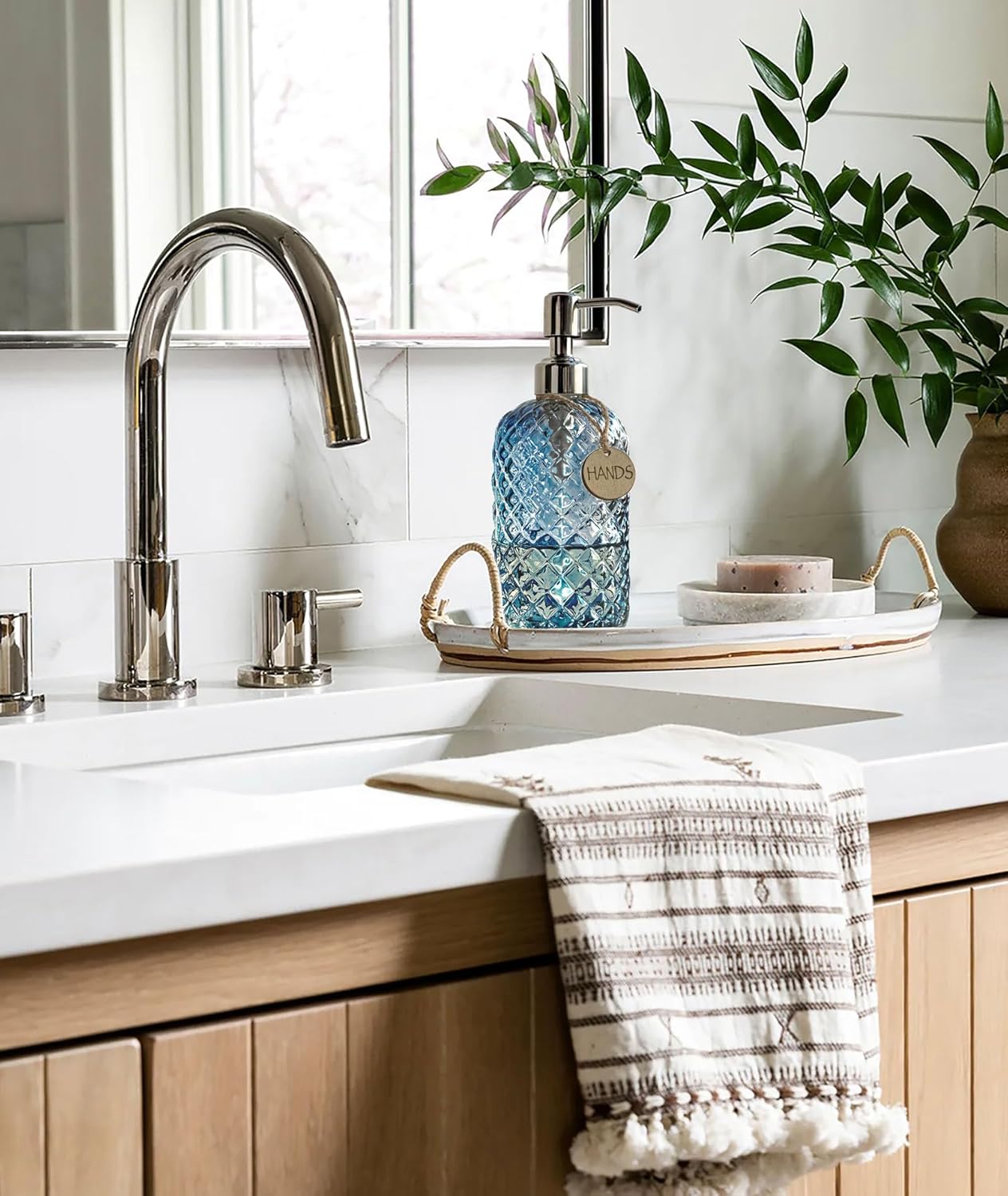 Say goodbye to unsightly plastic soap bottles and upgrade to the JASAI 18Oz Gem Patterned Glass Soap Dispenser today. It’s the perfect blend of form and function for any home!