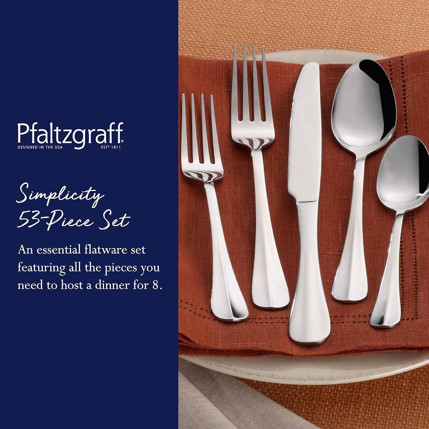 Pfaltzgraff Everyday Simplicity 53-Piece Stainless Steel Flatware Set, Service for 8