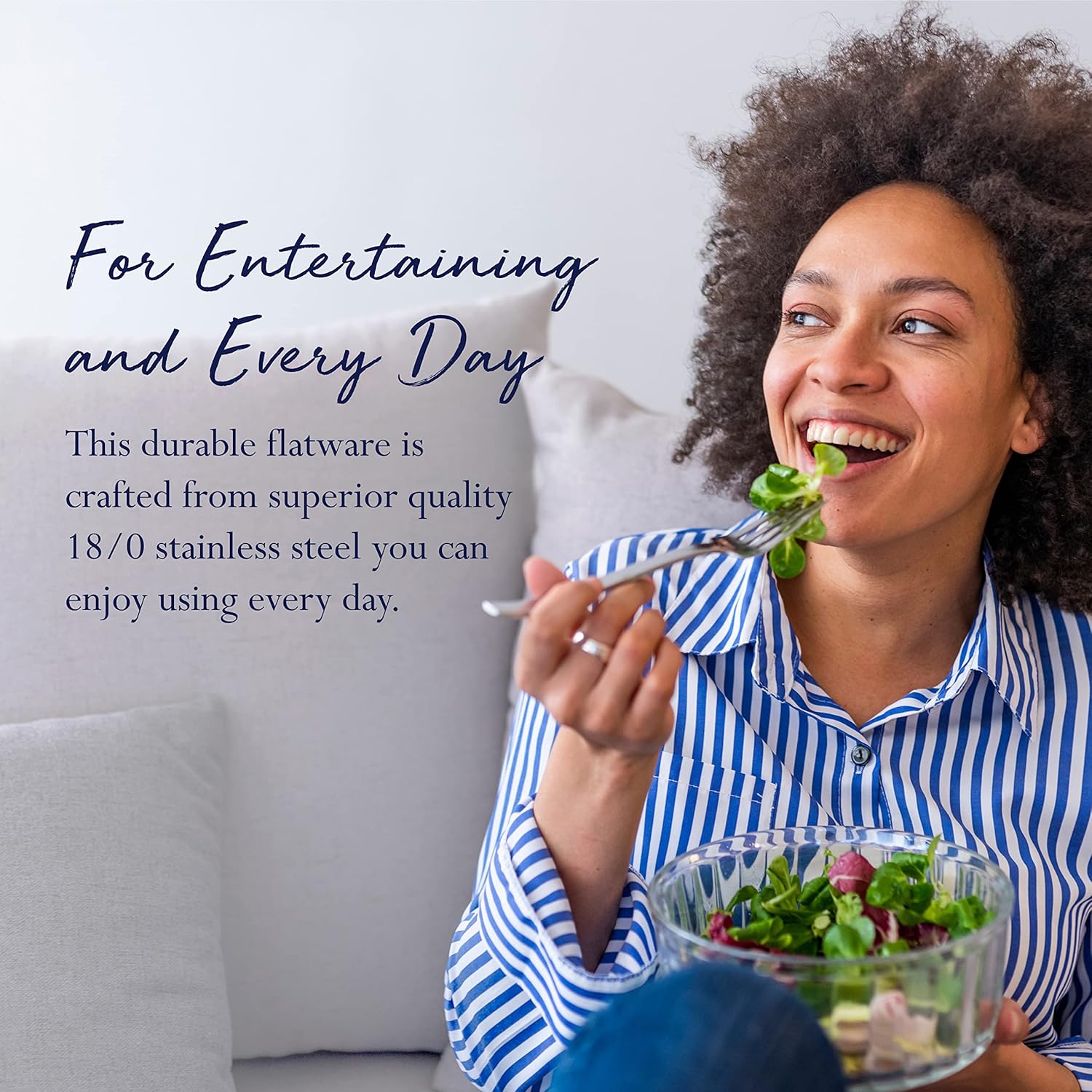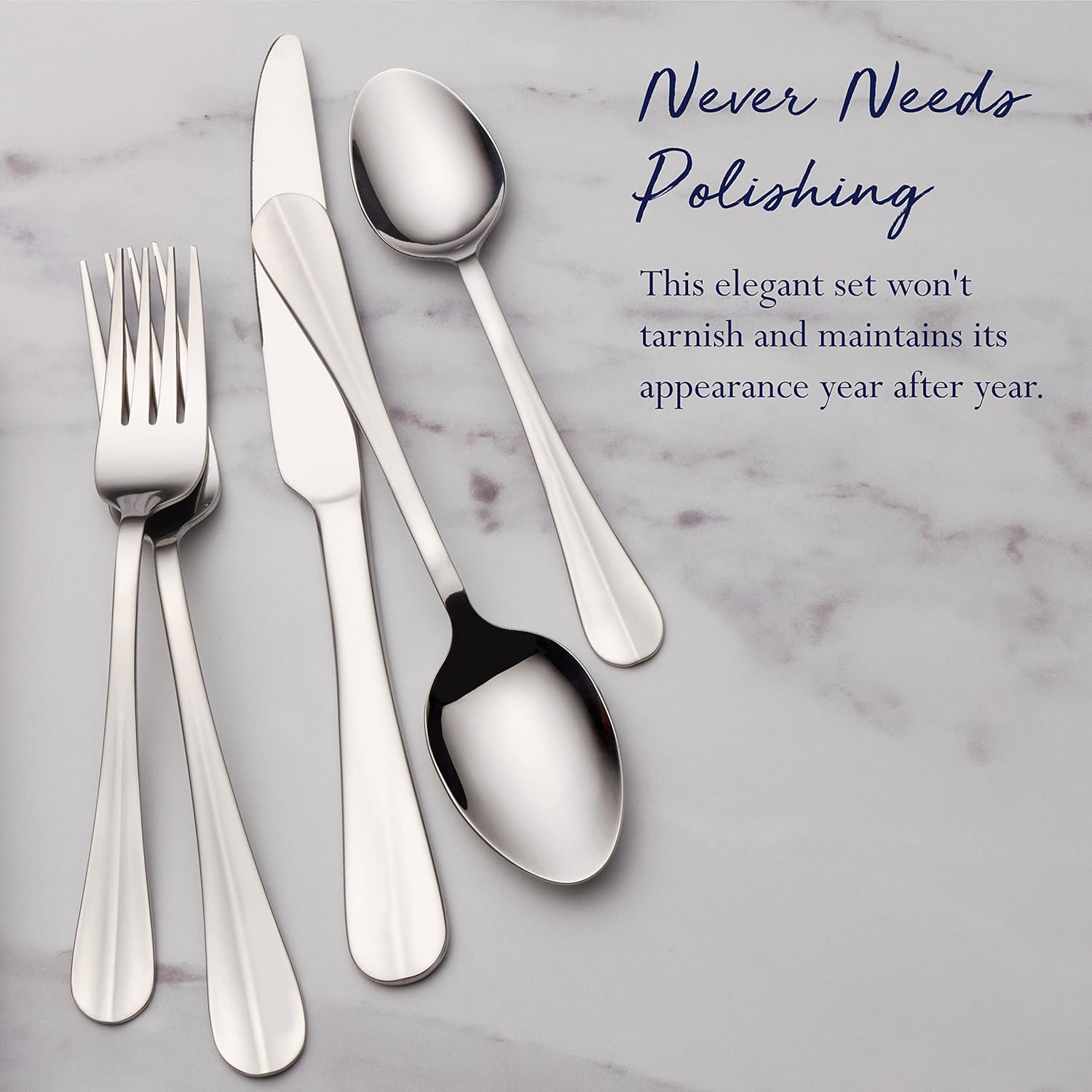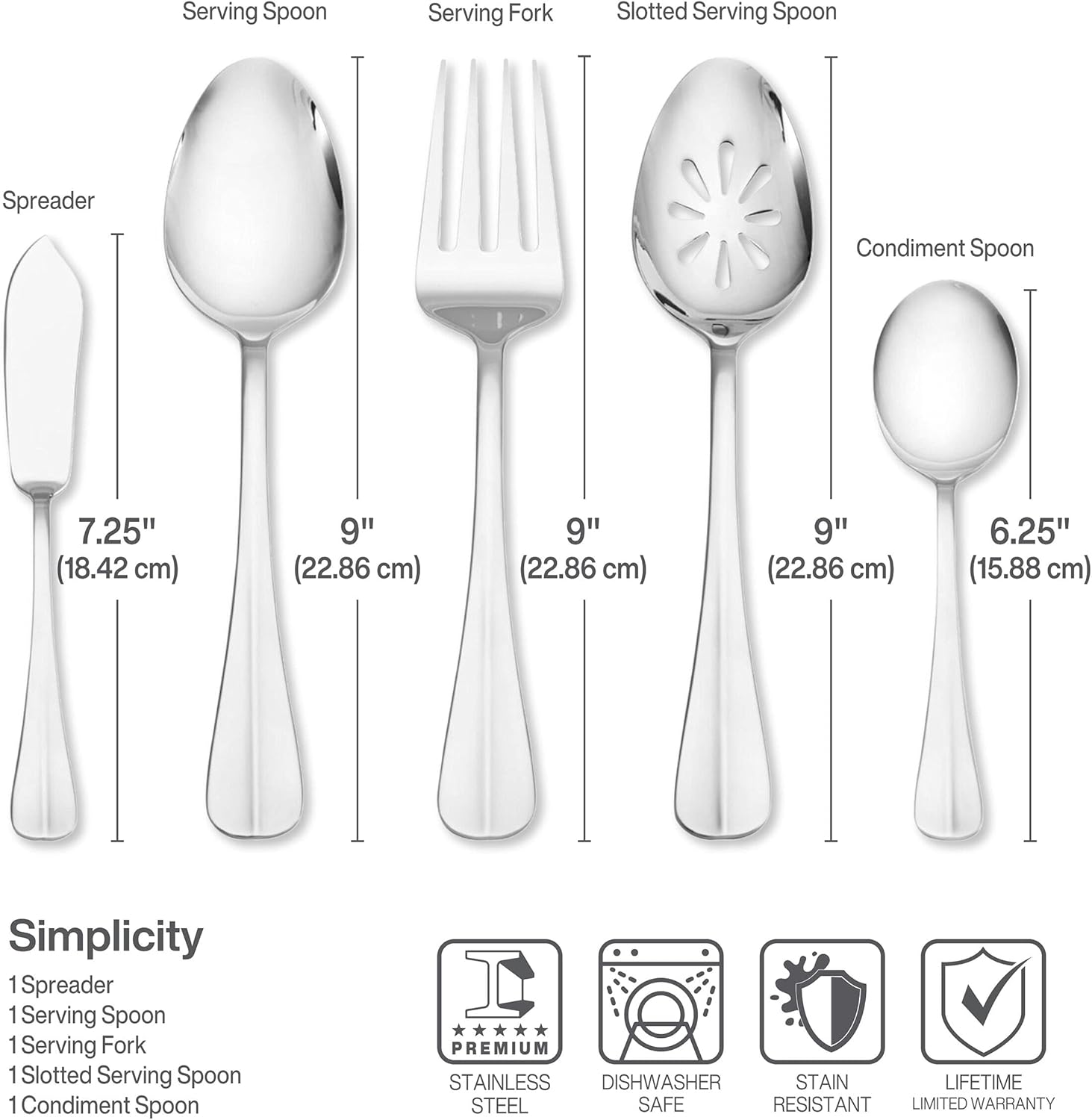 Each piece in the set is ergonomically designed for comfortable handling and features a mirror finish that adds a touch of luxury to your dining table. The set includes dinner forks, salad forks, dinner knives, dinner spoons, teaspoons, and serving utensils, providing everything you need to enjoy a complete dining experience.